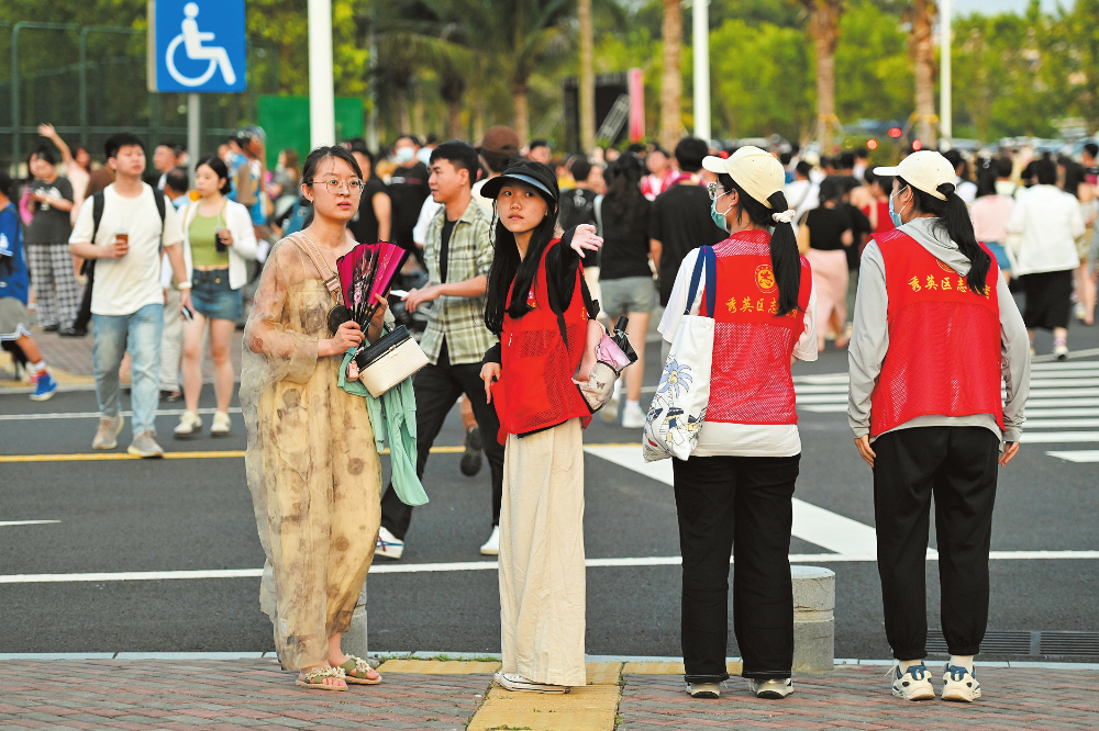 志愿者為觀眾指路。海口日?qǐng)?bào)記者 石中華 攝